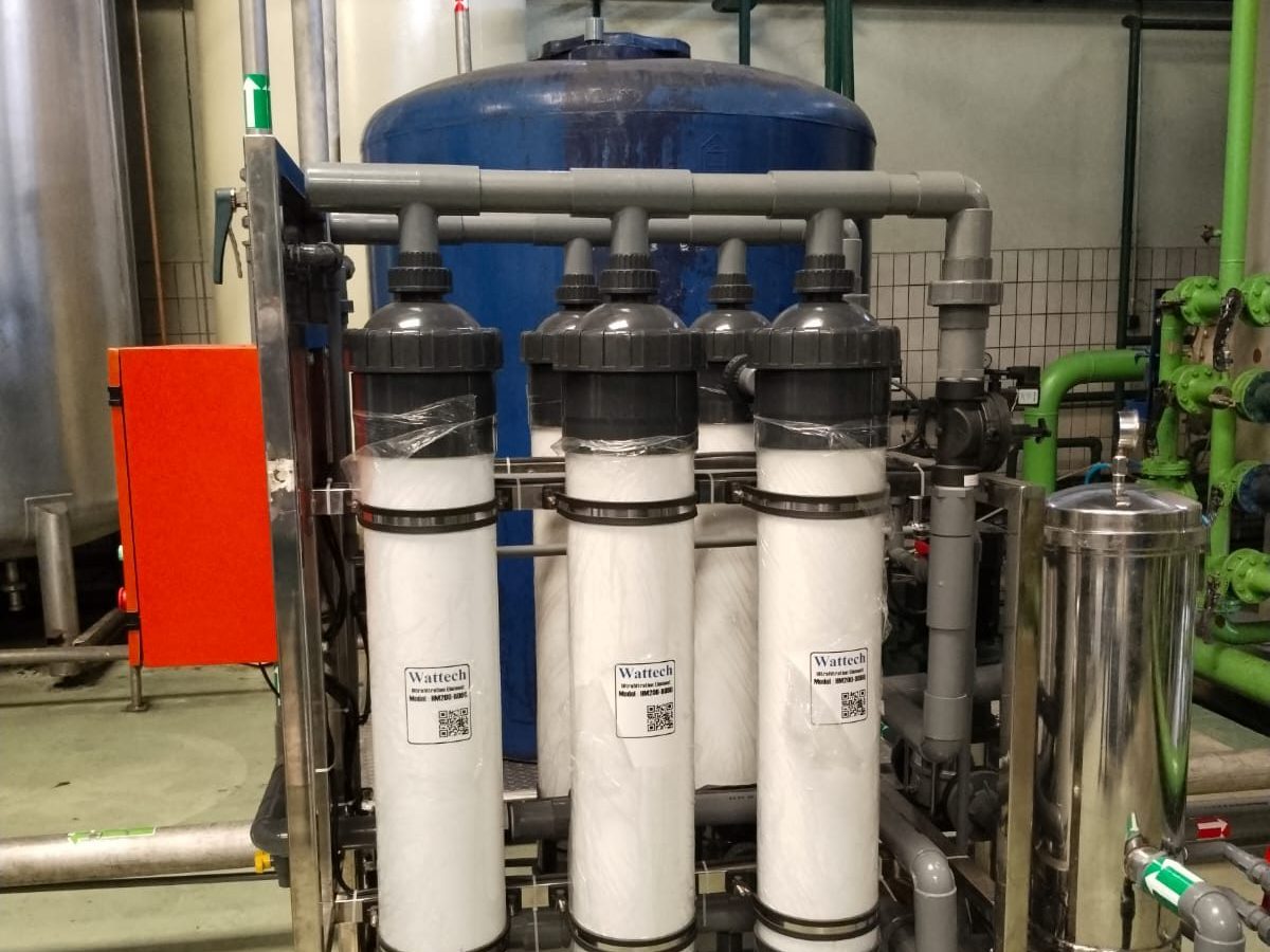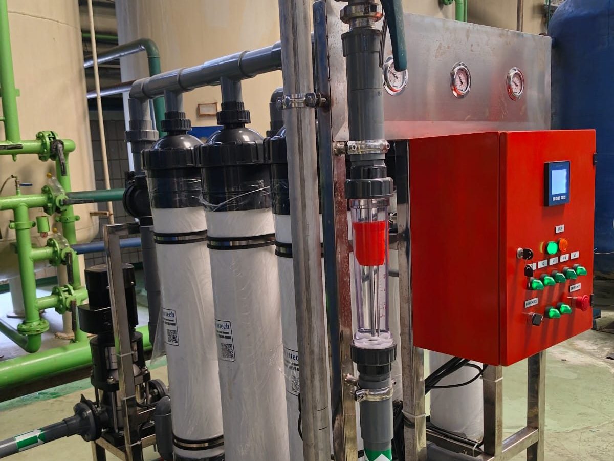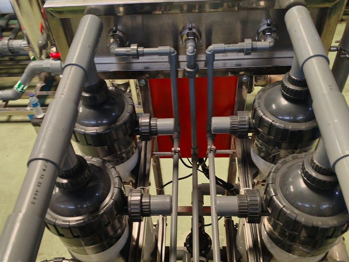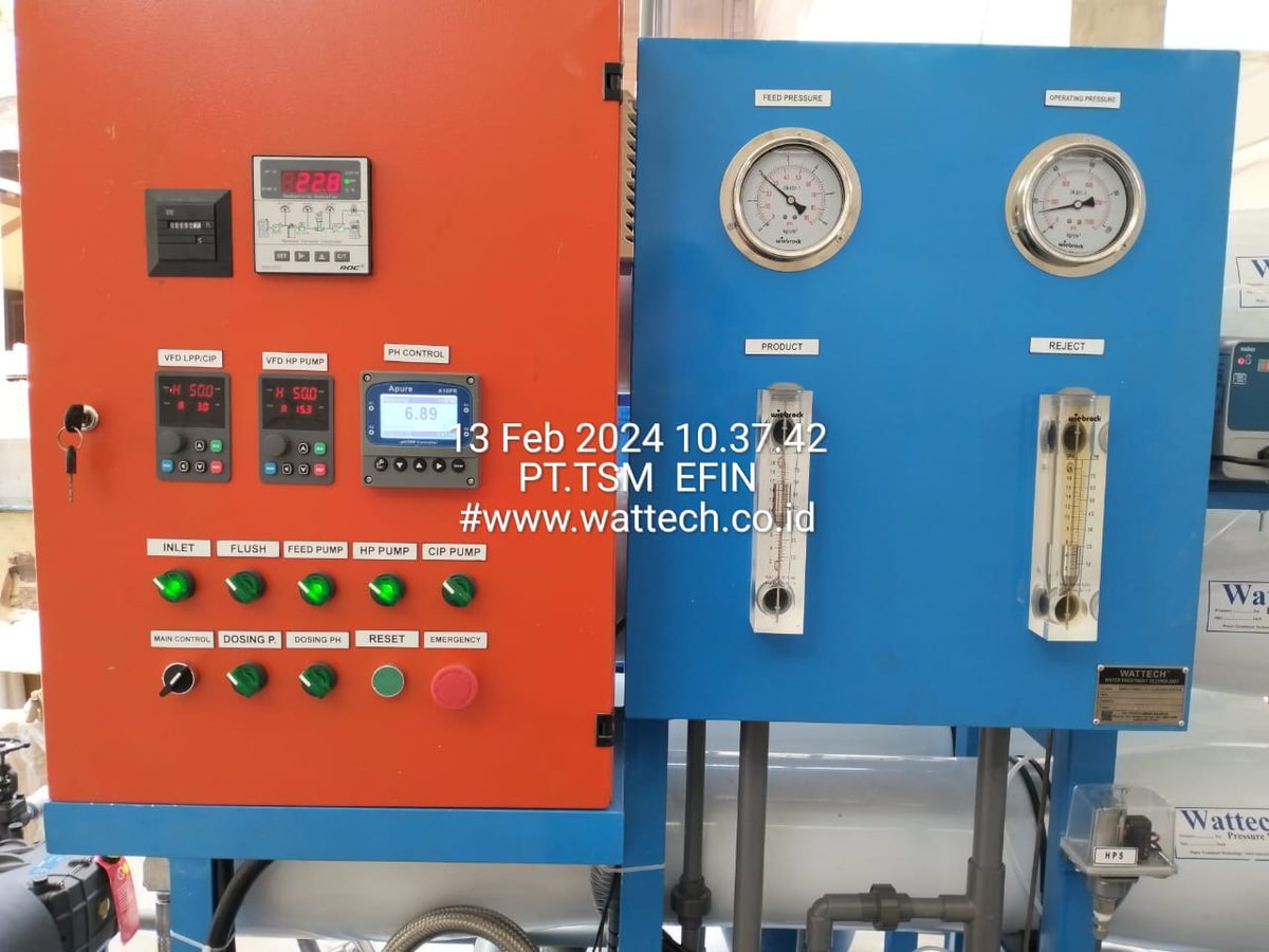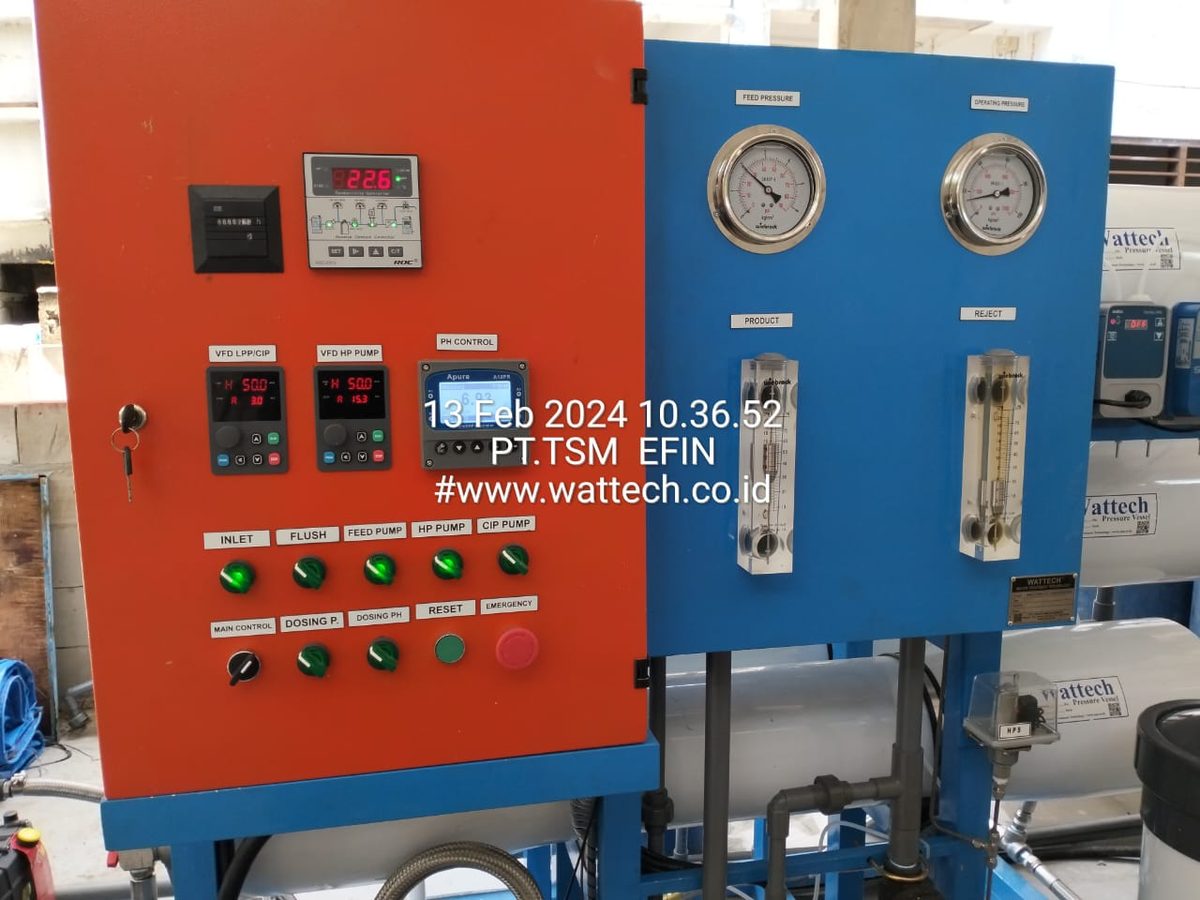 Sistem pengolahan air payau skala industri besar untuk kebutuhan proses produksi di Palembang dengan kapasitas 40 meter kubik per jam.